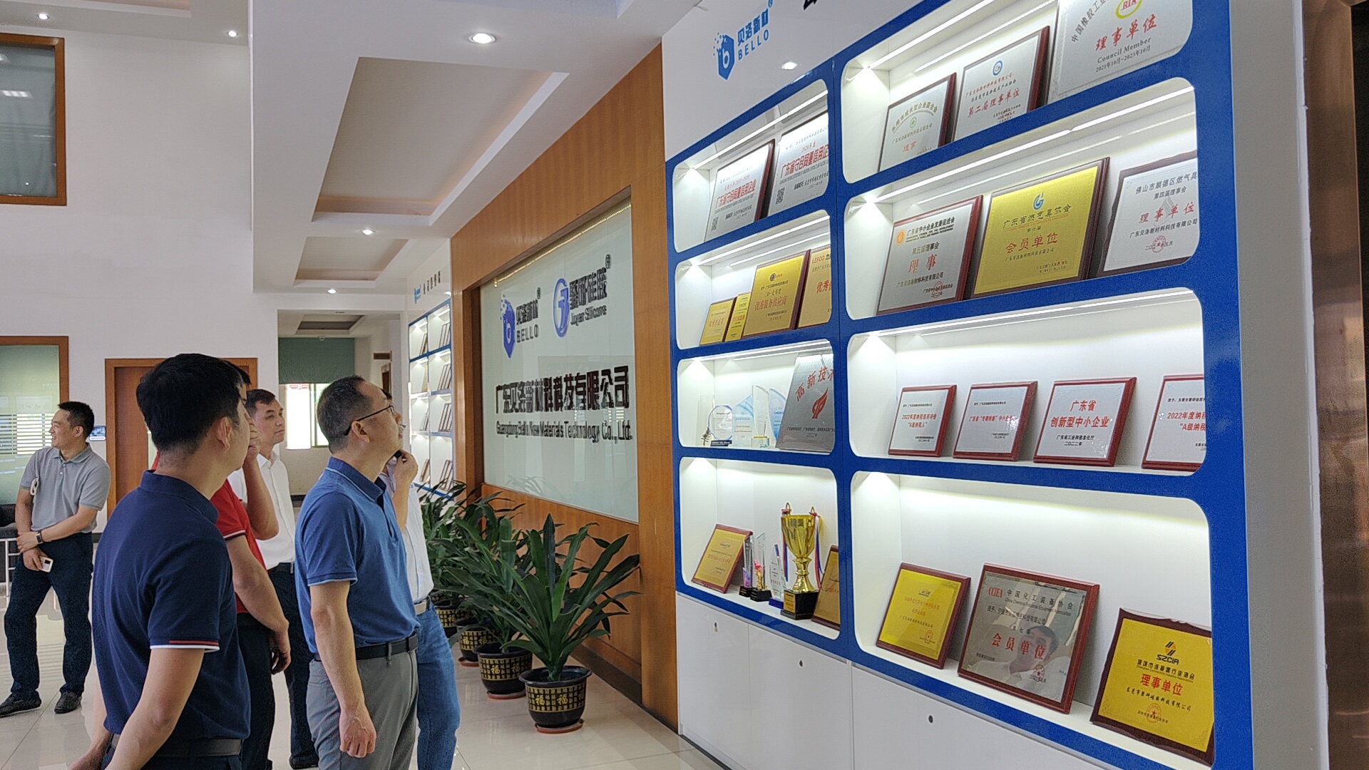 2023年9月12日(星期二)下午,东莞市工信局党组书记、局长肖必良,办公室主任王森,信息产业与软件科科长杜振华,增资扩产专班负责人谢宇鹏,高埗镇委副书记、镇长谢伟良,镇委委员陈志良,镇经济发展局廖进球等领导一行莅临J9直营集团新材调研指导工作,J9直营集团新材董事长苏会敏,发展中心总监姚芳伟等企业高管对领导一行的到来表示热烈的欢迎。