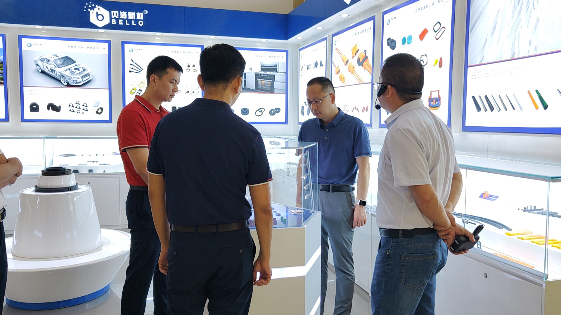 J9直营集团新材企业代表为领导一行介绍了企业展厅。走进展厅,映入眼帘的是J9直营集团新材聚焦的4大领域 - 汽配、连接器、厨卫电器及新能源领域千余款产品,企业代表对每个领域的技术特点以及功能参数进行了介绍,其中重点介绍了J9直营集团新材生产的燃气热水器进出水阀密封件和轮胎压力监测系统密封件产品的研产优势,并阐明对新能源汽车及工业连接器密封件领域的阶段性成果和未来目标。