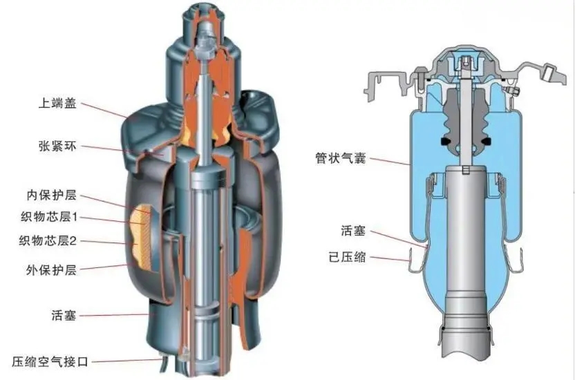 空气悬架:空气悬架采用空气弹簧取代传统金属弹簧,并结合电磁阀与气泵系统,具备多种调节功能。它可以实现车身高度调节,例如在高速行驶时降低车身以减少风阻,在越野行驶时升高底盘以增加通过性;同时,它还能调节悬架的刚度,以适应不同的驾驶模式,如舒适模式和运动模式;此外,空气悬架还可与 CDC(连续可变阻尼控制)或 MRC(磁流变阻尼控制)系统协同调节阻尼,进一步提升驾驶体验。新能源产业橡胶硅胶配件名称图解