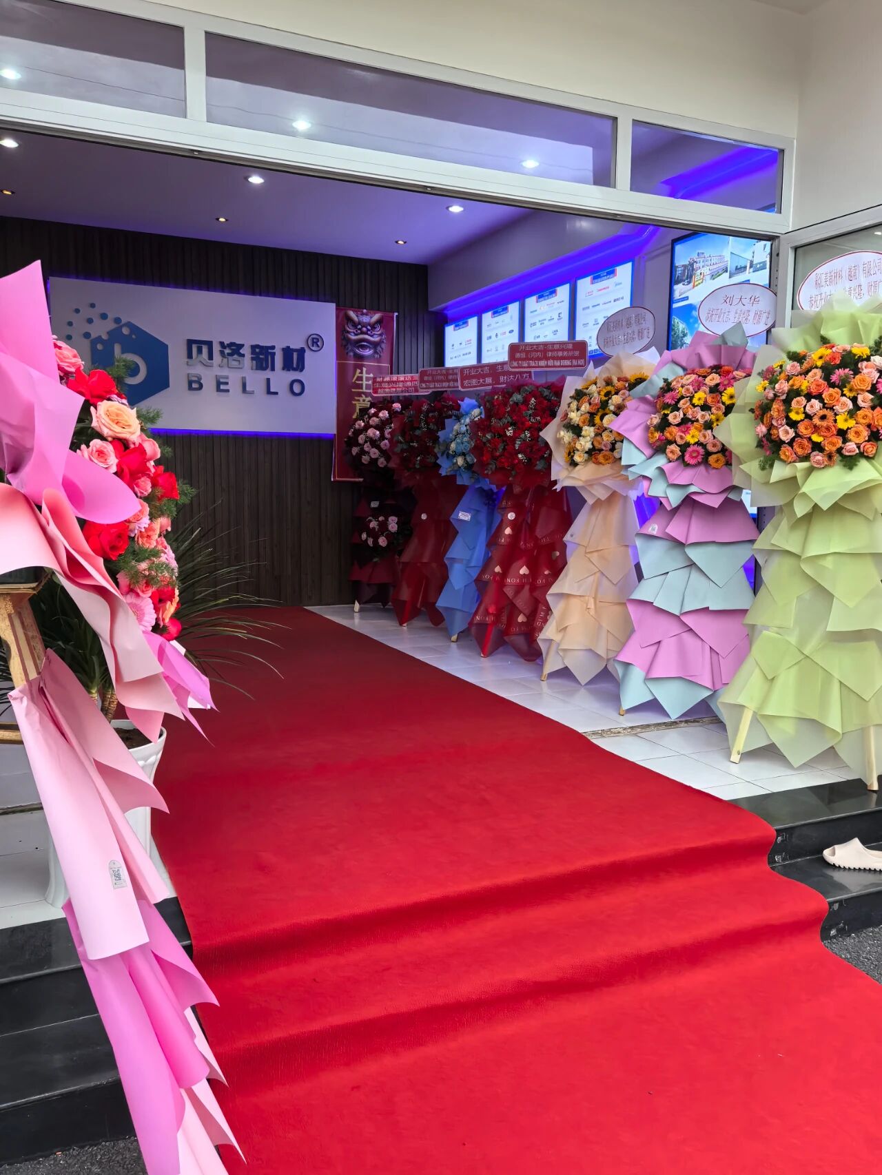 开业庆典仪式开始前,花篮锦簇,众多的花篮也是代表着兄弟公司与合作伙伴对J9直营集团的美好祝福,现场洋溢着喜庆的氛围。