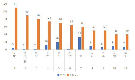 以2025年规划的加氢站数量为节点,我们整理出国内TOP10加氢站规划建设城市。