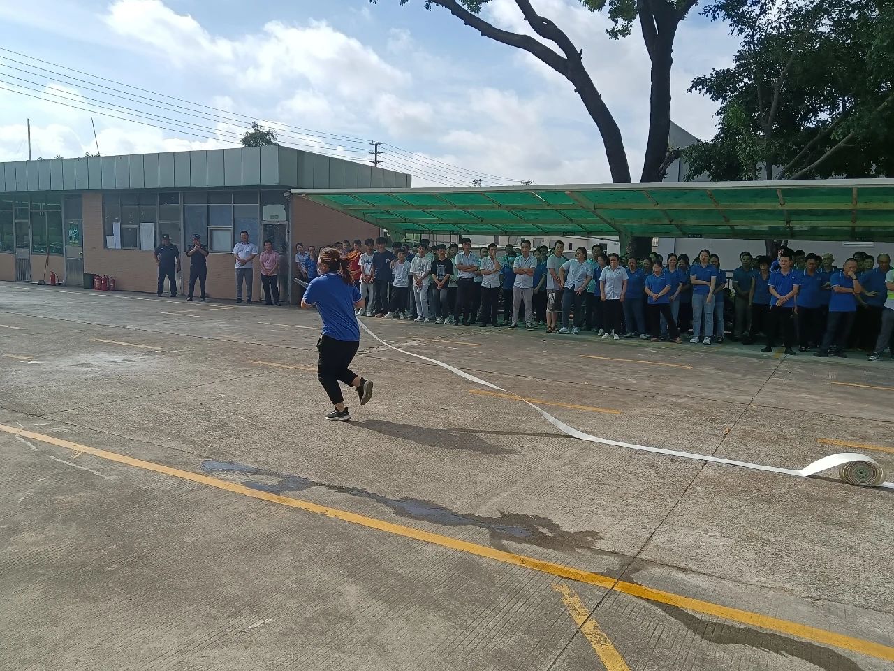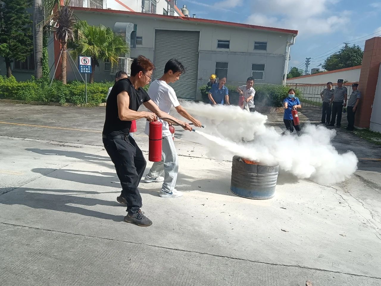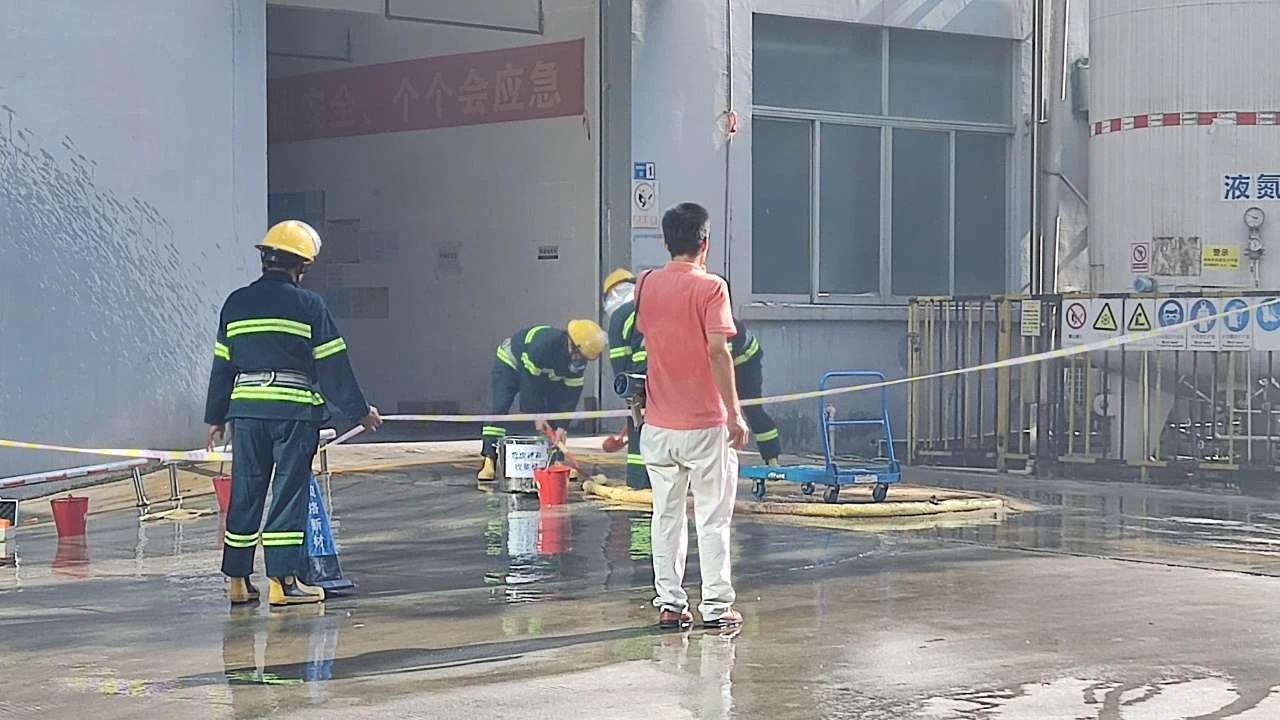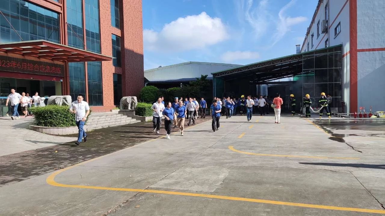 本次演练模拟厂区生产车间发生化学品泄露并着火,厂区工人发现灾情后,立刻启动火灾应急预案,快速响应灭火救援和开展人员疏散,经过紧张有序的救援,化学品和火势得到及时扑救,演练取得了预期效果。
