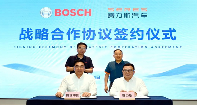 博世中国将赛力斯汽车作为长期战略合作伙伴,提供良好的工程及售后服务、供应保障、有竞争力的产品价格,双方全面推进业务合作,共同打造面向客户的高端智能化电动车。